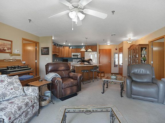 Welcome to this tremendous two-bedroom, two-bathroom condo located in the desirable Ledges II 55+ community. Situated in a tremendous Cedar Falls location, this condo offers easy access to trails, shopping, restaurants, Pheasant Ridge golf course, and many other amenities. The Ledges provides more than just a home—it’s a community of comfort and convenience. Enjoy heated indoor parking, plentiful guest parking, an exercise facility, a woodworking room, a welcoming common area, a guest suite for visitors, an individual storage room, a beautifully landscaped courtyard for all to enjoy, and much more. Inside of unit 214, you’ll love the open 1101-square-foot floor plan featuring a spacious, light-filled living room with sliding doors that open to a private pergola-covered patio—the perfect place to relax with your morning coffee or entertain guests. Open to the living room is the fantastic kitchen, which offers ample cabinet and counter space, an island with breakfast bar seating, and comes complete with all essential appliances. The split bedroom layout provides two generously sized bedrooms, each with its own ensuite bathroom. The first bedroom boasts a bathroom with a tub/shower combo and walk-in closet, while the primary bedroom provides a large closet, a huge bathroom with a walk-in shower, and a convenient stacked washer and dryer. This unit is truly one of the nicest you'll find in the Ledges community! If you’re looking for a move-in-ready condo, amazing amenities, and low-maintenance living all in a top-notch Cedar Falls location, this one is a must-see! Don't miss out—schedule your private showing today!