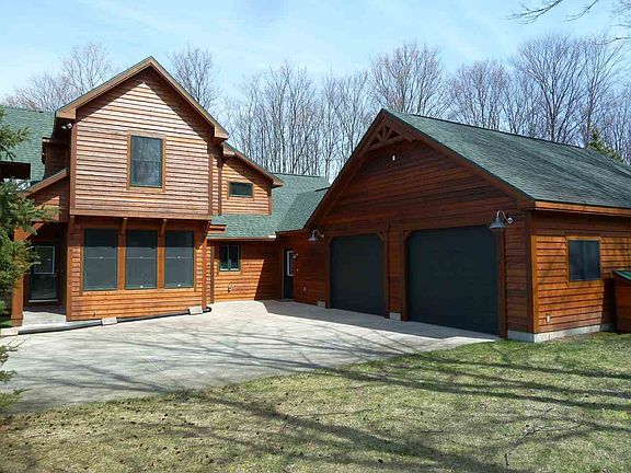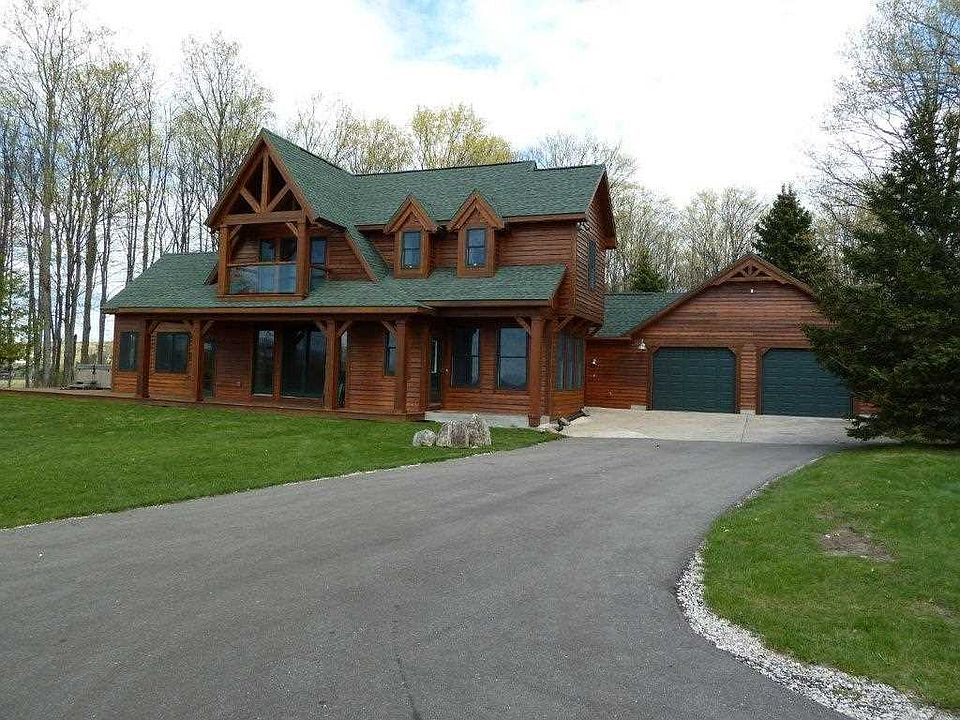 New in 2011, this beautiful 4 bedroom 3 bath cedar home sets on 5.6 acres and overlooks Lake Charlevoix. The decorating and attention to detail shine in this open concept home. Reclaimed oak flooring and beams from a local barn; floor to ceiling double stone fireplace; geothermal heat/air; new septic in 2011; new asphalt driveway in 2015. There is plenty of storage in the over-sized attached garage and a pole barn. Exceptional opportunity for a home well located on the north side of Lake Charlevoix.