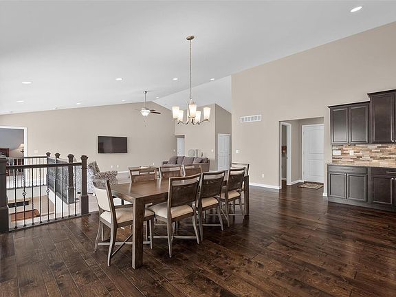 WOW!! Why Build when you can move right into this GORGEOUS home backing to Bear Creek Golf Course! This Spectacular Atrium Ranch features Soaring vaults, Beautiful hardwood floors, Professionally Finished Lower Level w/large Rec area, Stone Surround Wet Bar, Built in Microwave, Granite counter tops, & porcelain tile. Additionally a 5th Bedroom w/large walk in closet, a FULL bathroom, another Rec Area perfect for your Big Screen TV. You will FALL IN LOVE w/the EXPANSIVE Kitchen complete with a remarkable 12 Ft. ISLAND, Walk in pantry, Granite Countertops, stone backsplash & an abundant amount of Cabinets. Beyond the kitchen is a 1/2 bath, drop Zone and Generous Laundry Room. Off the Great Room, find your Master Bedroom Suite Complete w/a CUSTOM walk in closet. Oversized 3 car garage is completely finished including epoxy floor. Walk out onto your Covered Deck w/ceiling fan overlooking a tree lined private back yard. This home is in impeccable condition & ready for new owners!