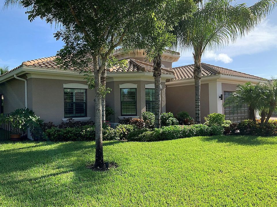 Over 6,000 sq. ft. of indoor/outdoor living space within StoneCreek Community's largest outdoor screened living space. Unobstructed views of the 1,200ft long lake front. Uniquely private lot location with only one adjacent home to the property. Over $500,000 of upgrades including a 35,000-gallon Nassau-built pool/spa, two sundecks, water features and 3-fountains surrounded by travertine pavers resting on a crushed limestone base for erosion and settling mitigation. Custom outdoor kitchen with Coyote gas grill, side burners, refrigerator, microwave oven and 75" UHDTV. Open concept living space with two-full island designer kitchen, quartz countertops, LED adjustable color temperature track lighting, designer interior paint, custom recessed ceiling features and 7-inch crown molding throughout. Upgraded brushed aluminum plumbing fixtures, whole-home water purification system with kitchen reverse-osmosis drinking fountain, microfilter air purification system and jetted soaking tub in main bathroom with full-height shower doors throughout. Remodeled laundry room with custom cabinetry, LED lighting, dog washing basin and 2021 Wi-Fi connected laundry appliances. New 2022 kitchen appliances, including Sub-Zero Designer Series refrigerator/freezer, JennAir dishwasher, Miele Range/Oven and built-in microwave. Custom closet storage systems throughout, including walk-in kitchen pantry, main and guest bedroom walk-ins with LED illuminated closets. Split-system air conditioners with heating in garage and lanai areas for year-round enjoyment. Encore brand garage storage and flooring systems, powered hurricane shutters, upgraded hurricane impact windows and Generac 22KW whole home natural gas generator with automatic electrical transfer switch. Secured fenced-in property with dog-run, two 12’ x 16’ covered structured aluminum pergolas and super-screened entryway foyer. StoneCreek is a modern, gated community with a 6.25-acre recreation resort-style facility including two pools, wet play area, whirlpool spa, fire-pit, 5 tennis courts, 4 pickleball courts, a beach volleyball court and a shaded pavilion for community events and private parties. Various indoor elegant spaces, a full-size basketball court, a yoga studio and a well-equipped fitness center.