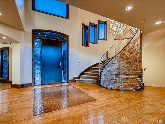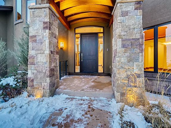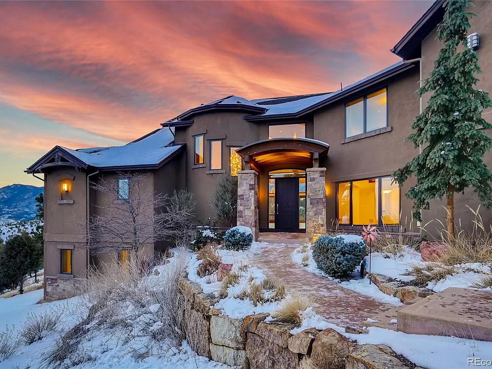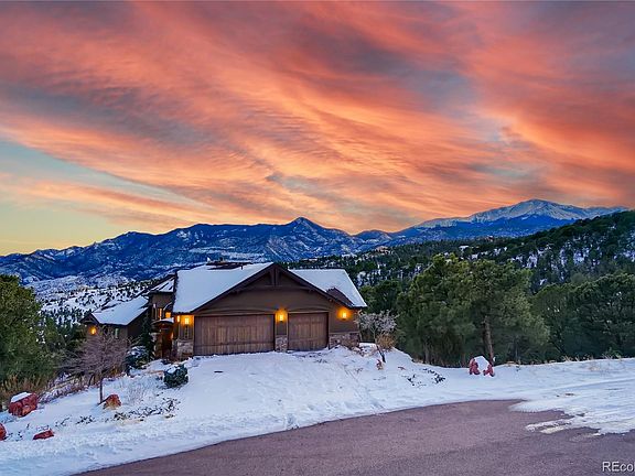 Spectacular home in the premiere and breathtaking Cedar Heights neighborhood. This truly remarkable location on almost 1.5 acres sits nestled among towering ponderosa pines, mountain views and stunning sunsets, with unmatched privacy and tranquility. Contemporary yet warm design effortlessly incorporates indoor and outdoor living with large windows and numerous patios and decks making this home ideal for entertaining. The elegant kitchen has top shelf Wolf appliances, artfully designed for maximized organization and modern sleek style. Amazing views from every room is attributed to an abundance of thoughtfully placed windows maximizing light and views. Every bathroom was designed and appointed with a unique personality of their own with tile, sinks and fixtures. Rounding out the main floor includes a dramatic stone fireplace, large kitchen nook, butlers pantry, and storage pantry with a laundry chute, large dining room and elevator. Plus a perfectly spacious master suite, artful master bath with views of the city of Manitou Springs and Pikes Peak from the bathtub. The upper level offers an office with vaulted ceiling, private deck, plus two good sized secondary bedrooms with attached baths. The lower level boasts a phenomenal entertainment and theater space, lower kitchen/bar and space for hobbies, a bedroom, plus a gym with impact resistant flooring.