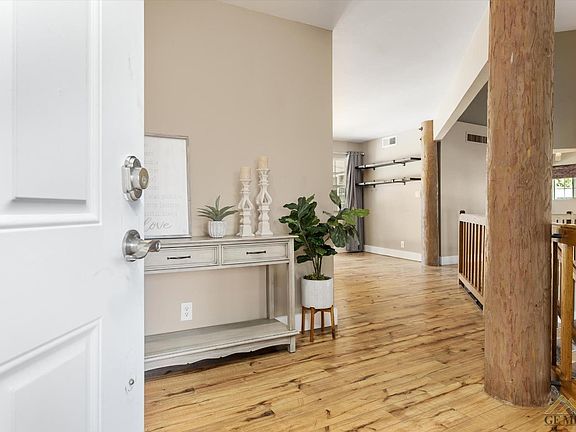 This expansive custom hilltop home, located in the desirable Bakersfield Country Club Estates, welcomes you with captivating neighborhood views. Established on the same street as a Frank Lloyd Wright designed home. The main house features 4 bedrooms, 2.5 bathrooms, upstairs loft with stunning views plus a closet. This charming home has been brought into the 21st century, with a beautifully updated spacious kitchen. Designed with custom made hardwood cabinetry, recessed lighting and walk-in pantry. Improvements include, new energy efficient windows, double sliding glass doors, french door and flooring. The open concept floor plan compliments the split wing design. Enjoy seeing 4th of July fireworks right off your living room balcony. Or enjoy hot summers cooling off in the pool. There is an attached studio, which conveniently accommodates one full bathroom, private room, dining, living room and kitchenette all with a private entrance.