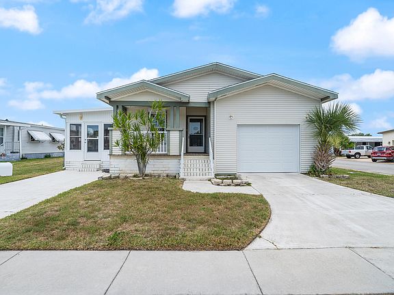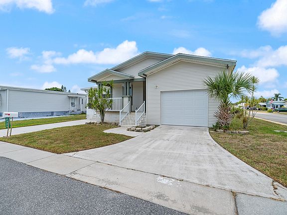 Must See!!! Beautiful, well maintained 2/2 with office plus Florida Room in highly desirable 55+ community. Spacious living room and large kitchen creates a fantastic great room for living and entertaining. Furniture included! Crown molding throughout with luxury vinyl planks flooring. Great front porch to enjoy as well as single car garage along with 2 exterior driveways. Own the home and the land! Community offers a clubhouse, community pool, activities, and more! Close to shopping, golf, and great restaurants.