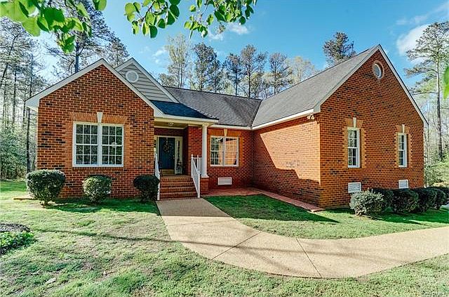 Impeccably constructed and maintained, brick front rancher with two car garage on 7.8 acres in New Kent County! Beautiful pine floors and 9 ft ceilings throughout. Family room with brick fireplace with gas logs. Open to the family room is a formal dining room with columns as well as the bay windowed dining area off of the kitchen. Luxurious master suite boasting more pine floors, plantation shutters, walk-in closet and ceramic tiled bath with jetted tub, separate shower, and double vanity. Sought after split floor plan with master suite at one end of the home and two more bedrooms at the other. Second full bath also has ceramic tile and is positioned in the hall between bedrooms 2 & 3. Direct entry two car garage is finished, heated, cooled and provides access to home through a ceramic tiled utility room. Dimensional shingled roof, deep well, aggregate patio and attractive brick accents! Wooded lot offering privacy galore! Close to Hanover County line with easy access to Old Church and New Kent rivers, wineries, golfing and more! Work in downtown Richmond? This rural paradise is the perfect retreat at the end of the day. Agricultural zoning! Plant a garden, raise some chickens!