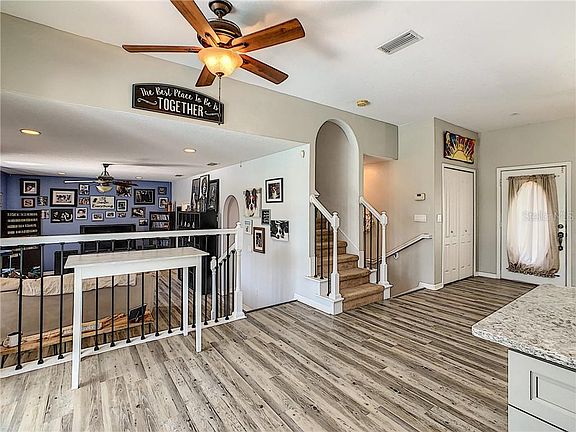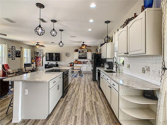 Welcome to this Modern Farmhouse POOL Home with 4 Bedrooms, 3 Baths and Oversized Garage - All on a Pristine 4.93 Acres! Beautifully Designed, Open Floorplan with Greatroom Including Kitchen, Family & Living Rooms; Separate Family Room, Bedroom Suite with Walk-In Closet & Full Bath, Spacious Laundry Room with Washer, Dryer, Utility Tub & Storage Closet. Upstairs Holds the Master Suite with Walk-In Closet, Walk-In Shower & Dual Sinks; 2 Add'l Bedrooms & Full Bath. New Luxury Vinyl Plank Flooring Throughout Downstairs. Beautifully Remodeled Kitchen FeaturesLarge Custom Island with Built-In Range, Seating & Storage; Cambria Quartz Countertops, Tile Backsplash, Recessed & Pendant Lighting, and New Black-Stainless Appliances. The Oversized Garage Makes a Great Man-Cave with the Mini-Split AC and Extra Screen Garage Door. Salt Pool, Hot Tub & Lanai Are Fully Screen Enclosed Overlooking the Manicured 5 Acres and Well-Stocked Pond! 2 Add'l BBQ Side Patios. This Home Was Built for Fun! Bring Your Horses, Rv & Boats. Add'l Features Incl. New Pool Salt Cell, New Upstairs AC Unit, New Water Softener, "On-Q" Wiring Throughout the Home, All Rooms Wired for Internet & Cable, Security System, Wired for Surround Sound, LED Lighting, Gutters & More! Peaceful & Private Location - Close to Public Boat Ramp, Convenient to FL Turnpike with Access to Area Attractions, Dining, Shopping, Lake Nona & Orlando Int' Airport. No HOA or Fees.