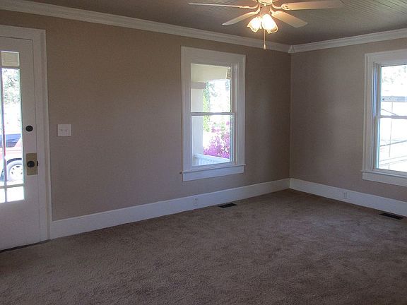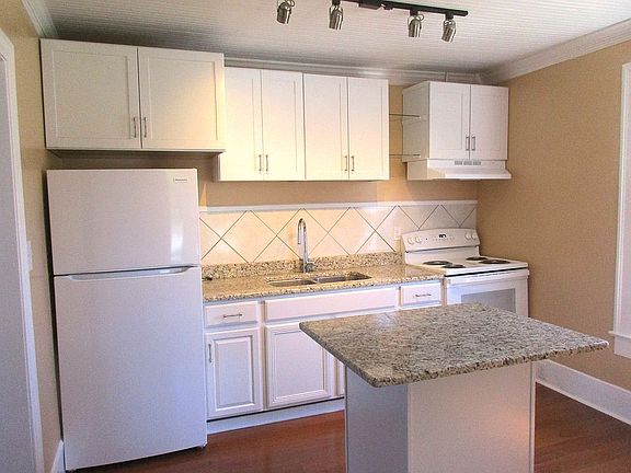 House has completely been renovated. If you have an agent would be willing to pay 2% agent fee. All New - Sheetrock, paint inside and out, carpet, laminate, electrical, plumbing, heat pump, ceiling fans, light fixtures, granite tops, kitchen island, refrigerator, stove, cabinets, bathroom toilets, tub, vanities, hot water heater, and vinyl tilt-in windows. House has 2 bedrooms, 1 large bathroom and a half bathroom, kitchen, living room, laundry room and long hall. Laundry room is ready for washing machine and dryer hook up. New back door with enclosed blinds. Metal roof has completely been recoated. Nice size front porch for evening relaxing, porch swing now in place. House is move in ready. Driveway to the side of the house, you can also drive to the back yard and turn around so you don't have to back out onto the street. Street parking is allowed.