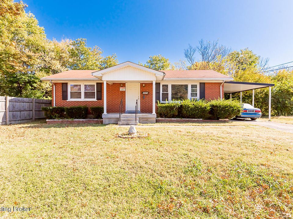 Welcome to your new home! This 2 bedroom, 2 bath brick ranch offers a covered front porch, attached carport, and a partially finished basement. You'll love the convenience of the location that gives you easy access to the Watterson Expressway. When you enter the home you will notice the hardwood flooring that extends from the living area and into the bedrooms. The eat-in kitchen boasts plenty of room for a nice sized table. In the This home offers plenty of extra storage space in the partially finished basement as well as the opportunity to complete the work and add to the finished space. Don't miss out on this great opportunity - schedule a private showing today!