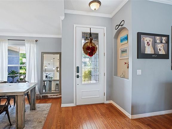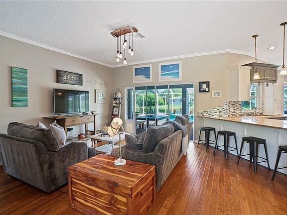 Spacious open plan with 3 bedrooms, 2 full baths, 2-car garage, pool and a large lot! Interior features expansive hardwood throughout the home, completely updated kitchen with custom built-ins cabinets, and a large entertaining area through a living and dining area combo. Both bathrooms have also been fully redone and the master bath is a modern farmhouse dream with dual sinks, plenty of cabinet space for storage, and an oversized walk-in shower. Large covered lanai features a peaceful lake view with ample room for both lounging and dining complete with brand new cage lighting. Nestled in the perfect location with A-rated schools, close to I-75, and a quick drive to Siesta Key, this home is the perfect mix and exactly what you've been looking for.