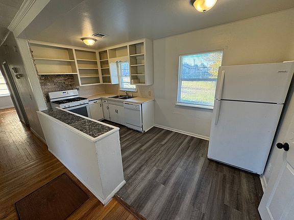 4 Bedrooms, 1 Bathroom, shed in back Carpet in bedroom and wood floors throughout rest of home. Open Living Room lots of natural light, Open Kitchen, Large Laundry/Utility room. Small to medium size dog allowed, there is a pet fee. Message us to schedule a showing 2 year lease.