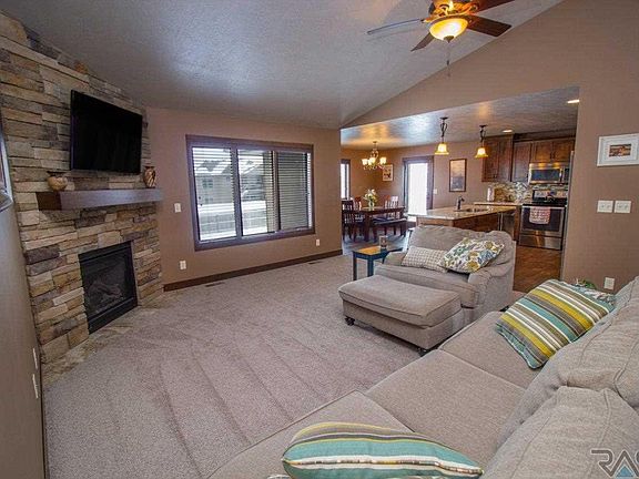 Beautiful ranch home located in the coveted east side! Covered front porch entry offers cover to your company at the front door. When entering through the front door you will enjoy the vaulted ceilings and the look of the living room with a stone fireplace and open floor plan. The beautiful kitchen and dining room are complete with tile floors as well as a huge island, stainless steel appliances and tile back splash. The master bedroom has tray ceiling, a large walk-in closet and master bath with tiled walk in shower and double sinks. The large mudroom has plenty of room for laundry as well as lockers and a sink. Downstairs the enormous family room features a gorgeous stacked stone gas fireplace, sought after wet bar, two more spacious bedrooms, and plenty of storage. The sprawling back yard has a newer privacy fence, covered deck, and underground sprinkler system. Schedule your showing today to make this house your home!!