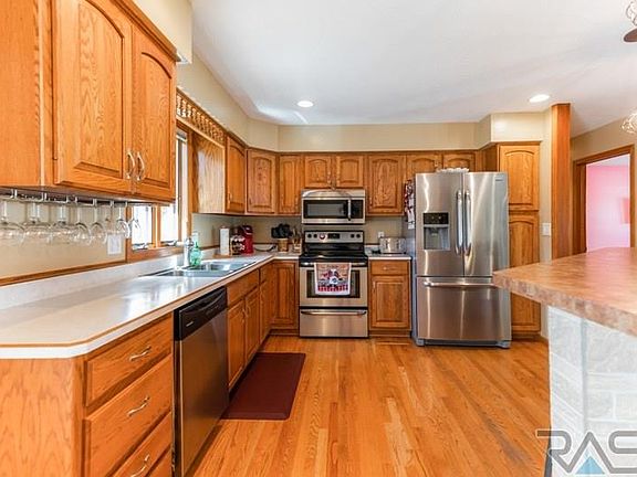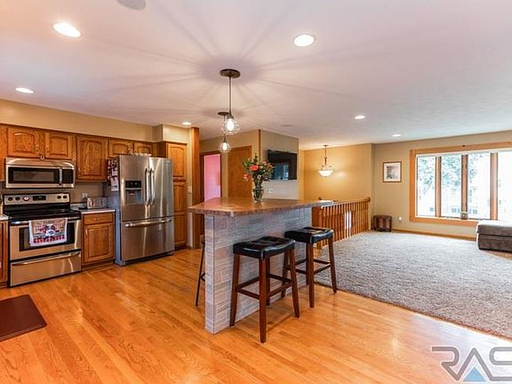 Pride of ownership shines through at this tremendous home on a corner lot in southwest Sioux Falls. Wide open main floor GREAT ROOM encompasses a living area with huge east facing window for lots of morning sun & dining area with oak hardwood floors that run through to a SHOW STOPPER kitchen boasting stainless steel appliances & massive center island. THREE MAIN FLOOR BEDROOMS includes all with high quality hard surface floors is highlighted by the master which also has a pass through door to the full bath. In the lower level is a cozy family room featuring a gas fireplace flanked by high quality wood built-ins. No dungeon laundry room in this home-its FULLY FINISHED w/lots of natural light due to a garden level window. The 2nd bath is also in the lower level. TRIPLE GARAGE is finished with the 3rd stall boasting an epoxy floor & a heater to keep it warm all year round. Upgrades: MASSIVE no maintenance deck & concrete patio, high efficiency furnace, sprinkler system, surround sound.
