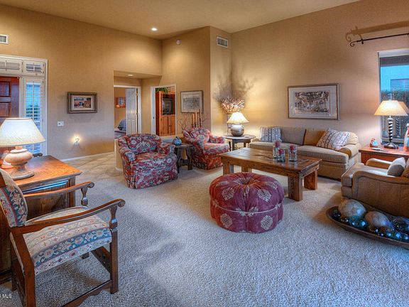 Fantastic golf and mountain views from this beautiful home. The home offers family and living rooms, an extended den, and guest bedroom suite. Many upgrades include cozy fireplace, corian countertops, updated baths, plantation shutters, and wide lot. All you have to do is pull up a chair, relax, and look at the soothing ever-changing mountains. Some furnishing available.