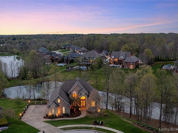 Exquisite lakefront living in the prestigious Woods of Lafayette! Nestled in a quiet cul-de-sac with panoramic views of the lake and the Knobs, this 5 Bedroom, 4.5 bath, 3 car garage luxury home offers a perfect blend of elegance, comfort, and sophistication. The expansive 1.5 story home features a two story living room with custom built-ins, large custom windows overlooking the lake, extra tall custom doors, a formal dining room, a beautifully updated kitchen with a new chef's hood and a new oversized granite island. The freshly painted interior is highlighted by brand new hardwood floors in the living room and main level primary suite, which also boasts serene lake views and a spa like bathroom suite. Upstairs, you'll find 3 generous sized bedrooms, 2 full baths, including a private en suite bath. The finished walkout lower level impresses with nearly 16 ft ceilings, a spacious family, rec room, wet bar, an additional large bedroom, full bath, an extra storage closet, an extra storage room, and a stand alone safe. Last but not least, enjoy the stunning lake views from your private composite deck, your 16ft covered patio, or your all season sunroom; perfect for entertaining and just relaxing! Schedule a private tour today! Some photos are virtually staged