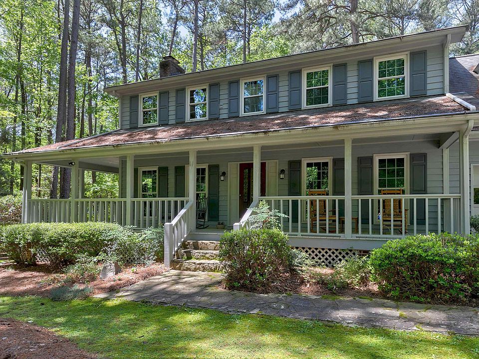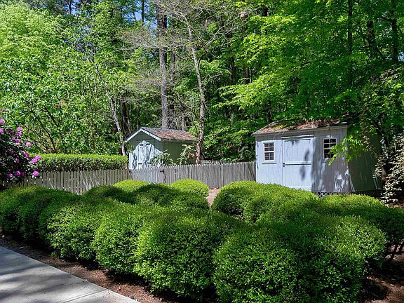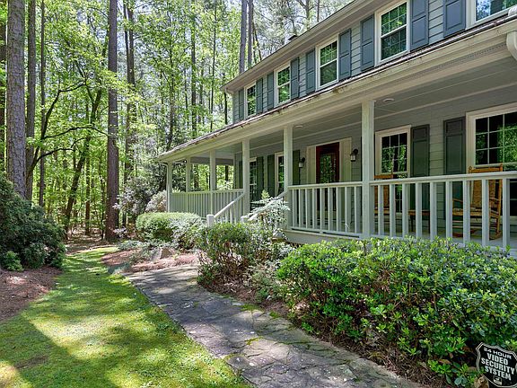 EXCEPTIONAL 3 bedroom 2.5 bath -beautifully landscaped!- Contemporary FarmhousE on 3.64 PRIVATE wooded acres near Crossroads shopping & restaurants. UPDATED KITCHEN features: hardwood & tile floors,granite counter tops, wine cabinet, desk, SS appliances, greenhouse wndw, island & pantry. HUGE OWNERS' SUITE w/ Flex, Storage & Sitting Rooms. BEDRM#2 has hdwd built-in desks. GARAGE: Storage Rm., + Workshop/Hobby Rm, cabinetry & shelves for tools. LOVE ENTERTAINING? Both open & cozy spaces inside while outside has 3 Porch surrounds, multiple landscape decks & benches, selected plantings, a water feature, raised bed gardening & 2 handsome storage bldgs. CONVENIENT TO: RTP,Cary ,NCSU, Dwtn Raleigh, Fenton. FUN? Yates Mill Pond, Lake Wheeler, Lake Johnson, NC Farmers Market, 3 Amphitheaters. NO CITY TAXES!! NO HOA!! Outdoor photos taken last Spring so now you can see for yourself how spectacular the Fall follage is.