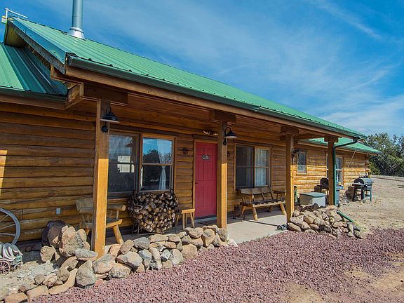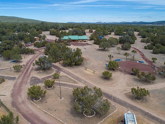 Equine Enthusiasts....we have a skillfully designed property for both dressage, western, training and jumping.....PLUS a log style home camping areas all on over 43 acres that also border State Trust Land. Good access and attractive with corrals, mare motel, tack shed, pole barn, round pen, gathering corral, and jumping/training obstacles. Northern Arizona climate at 5300 ft means cooler summers and mild winters. Plenty of pasture area and water tanks throughout the property. Entertaining your camping and RV guests made easy within the split rail fenced entertainment area, horse-shoe pit, and after the Saturday night entertainment...follow with a visit to the outdoor chapel! Of course, the day will begin and end inside your ranch style home with an open floor plan, viewing windowand features including pine ceilings, two bedrooms and two bathrooms, laundry room, wood stove and oversized two-car garage. Home has a newly upgraded solar system with lithium batteries, a 2,500 gallon water storage tank and dog run area. Mornings and evenings sitting on the covered front porch, overlooking your property and animal friends, breathing the clean fresh air and watching the starry night skies....this is the dream and it can be yours!