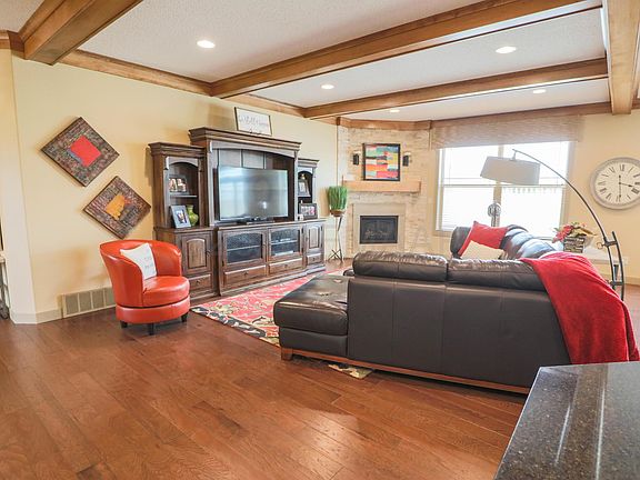 This beautiful rambler with high-end finishes and an HOA offers easy living! The open concept living spaces have hardwood floors throughout, crown molding, beautiful beams, gas fireplace, and gorgeous Maple kitchen cabinets. The home is completed with a master bedroom and en-suite & additional guest bathroom and guest bedroom. The guest bedroom serves as an office, although has a built in murphy bed. The back patio is fenced for your privacy! Whether you're looking to downsize, or make the first leap into home ownership, this home is perfect for you! Owners also have free access to the Country Groves Clubhouse providing a large community room for private gatherings, and also a full exercise room!