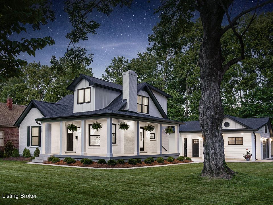 Welcome to the eminently picturesque 4306 Alton Road in Saint Matthews. The next owner is going to be incredibly lucky to call this home. From this Realtor's point of view, I would confidently affirm that this is the most well done, designed, and complete remodel I have ever seen. It's a beaming white and black accented 3 bedroom, 3 full bath cape cod with modern farmhouse elements and is essentially a new build set on an enormous landscaped lot. As you enter, you'll appreciate the open floor plan. Wide plank flooring is found throughout the first level. The Living Room offers a gorgeous fireplace, new ceiling fan and can lighting, neutral paint, and an abundance of sunlight from the new windows overlooking the porch. The kitchen, full bath, a fabulous hallway organizer / coat storage, and a bedroom finish out this level. The full bath's herringbone tile in the shower, marble top on the vanity, and patterned flooring tile give this room such style and elegance. The kitchen offers herringbone and subway tile backsplashes, crisp white cabinets, quartz countertops, and a full suite of new stainless steel appliances including a smooth top range with a range hood. Upstairs you will find an additional 2 bedrooms, each with their own full bath. The primary suite offers new plank flooring, neutral paint, an updated ceiling fan, a large walk-in closet, gorgeous tile and frameless glass doors in the shower, updated flooring and fixtures, and a double vanity. Even more living space can be found downstairs in the newly finished family room. There is also a fully finished laundry room with cabinets, shelves, and a shiplap backsplash. Even the storage areas have been meticulously cleaned. There's also an abundance of outdoor patio and entertaining space between the home as well as the newly built 3 car detached garage. (2 +1) Every aspect of this striking property (from the materials, layout, meticulous craftsmanship, thoughtful design details and more) evokes the highest-end sense with no shortcuts having been taken in arriving at this beautifully finished home. Don't wait to schedule your showing!