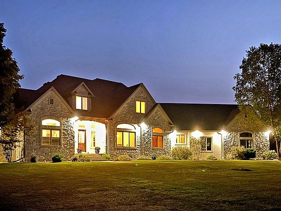 PRICE REDUCED -NEW ROOF< Magnificent custom built home on an oversized lot in a area of million dollar homes. Steep pitch roof, beautiful brick and stone exterior and Pella windows that brings the outdoors into this lovely spacious home. The entry porch is covered and the front door is custom wood. Extensive landscaping . The covered rear patio has 3 skylights wood ceiling and ceiling fan. There is an additional open patio that leads to the John Deer room. Entry, Formal Dining, Hall, Kitchen, Hearth Room, dining, laundry, and baths all have oversized Italian porcelain tile. There are extensive crown moldings and indirect lighting throughout. The Great Room has a stone fireplace and and a great view of the private back yard. The kitchen has an oversized island with granite countertop, salad sink and GE cooktop. Tons of beautiful raised panel alder wood cabinetry, and a walk-in pantry. The Hearth room also has a beautiful fireplace with a great view of backyard. Most ceilings on the main living floor are 12 ft.. The master suite has a special ceiling with indirect lighting, ceiling fan and access to the covered patio. The master bath has a vaulted ceiling, ceiling fan, granite vanities, large tile walk -in shower with arched entry. There is a corner jet tub and two large walkin closet. The second floor has a large bonus/rec room with wet bar with view of back yard , two bedrooms and a full bath. with phenomenal views. The basement has a huge finished room with bath and a patio. Seller has just put a brand new roof on in August 2020.. The home is very open and light with custom high quality features found only in much more expensive homes. Sub. joins Fremont Hills and has access for golf carts to cross over there for all the golf enthusiasts