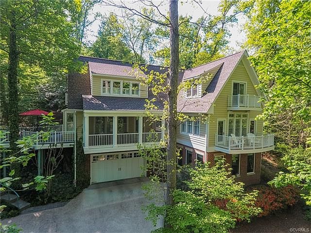 COMPELLING NEW PRICE! Your own private and peaceful retreat just steps away from the James River! Designed as an architect's personal home, the open floor plan, expansive windows and multiple porches, balconies and patio blend the indoor and outdoor living spaces to take advantage of the lush natural beauty and professional landscaping. A full renovation in 2013 highlighted by quality craftsmanship and keen attention to detail will please the most discerning buyer. Two .35 acre lots are included in the offering, and there is a deeded right of way off Echo Ho to the rear of the property and detached garage with guest suite. (View video by clicking on the movie reel icon below main photo) This is truly a special property!