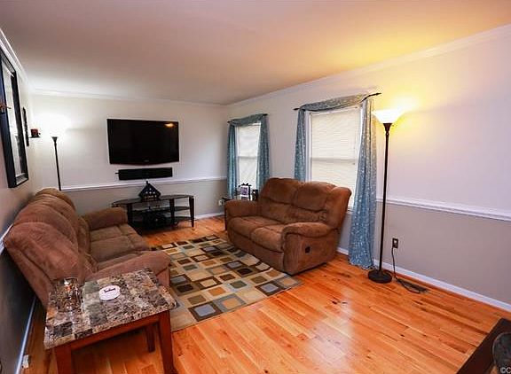 Welcome home to Hunters Landing, conveniently located minutes to anywhere! This great home features a living room with new hardwood floors, crown moulding, chair rail & coat closet, a large eatin kitchen with walkout bay window, nice family room with woodburning fireplace, newer carpet, crown moulding & chair rail, 1st floor bedroom with carpet, crown & chair rail & full bath on 1st floor as well as 2 large bedrooms (master with new hardwood floors & 2 closets) & 2nd with new carpet & ceiling fan, full bath & utility closet on the 2nd level! The privacy fenced backyard features a large rear deck that is perfect for entertaining family and friends as well as a nice storage shed. Refrigerator conveys! Seller is offering a 1 YR HMS warranty and $3000 towards closing cost, points and/or prepaid items! Great shopping, good restaurants, Hull ST, 288 & Chippenham are all nearby offering an easy commute to all areas! This is truly a great place to call home!