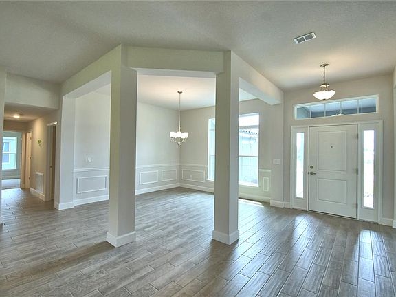 Under Construction. This 2500 Sq ft home has 4 bedrooms and 3 baths, 3 car garage, lots of entertaining space and luxurious details throughout! Upon entering you will enjoy the open concept great room/dining room/kitchen with 10’ ceilings, wood look plank tile in main areas, granite countertops throughout, 5 ¼ inch baseboards, wainscotting in dining room and much more. The owner suite is spacious with Tray Ceiling w/crown molding. Ensuite has double sink vanity with extra storage drawers, linen closet, tile separate shower w/glass door, nice tub, etc. This home has 3 other spacious bedrooms and 3 baths with linen closet, tub-shower combo, separate toilet, duel split vanity sink with storage drawers. The exterior of the home has a tile roof and patio paver driveway, and patio paver covered lanai. This community is gated, has a gorgeous clubhouse with fitness center, pool overlooking the lake, basketball court, tennis.