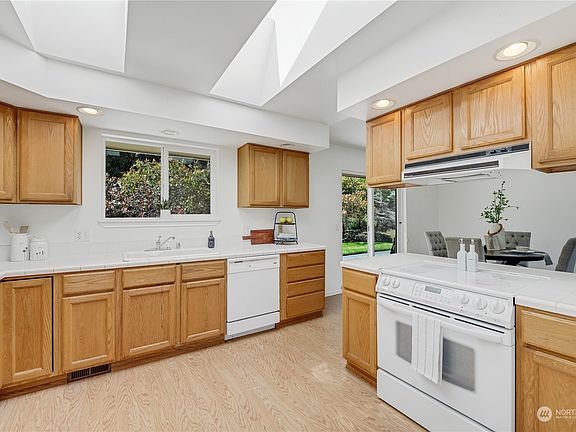 Discover the charm of this one-level home in Anacortes' coveted Skyline neighborhood! This home features new siding and new carpet offering a fresh and updated feel. Enjoy a partial view of Burrows Island and the bay. This home includes an oversized two-car garage, raised garden beds, and an ample living room with tall ceilings and a cozy gas fireplace. The abundance of natural light creates a warm and inviting atmosphere throughout. Live large with a dining room + 2 additional flex areas and kitchen with multiple skylights. The Skyline neighborhood is known for its tranquil surroundings, friendly community, and many amenities. Ideal location with only one immediate neighbor!