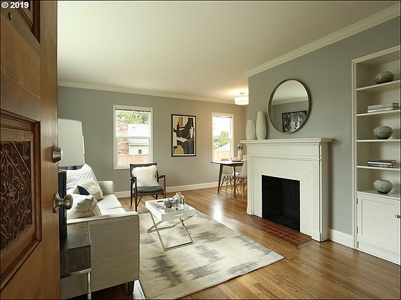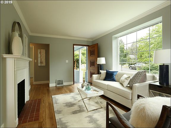 Sweet 1945 Bungalow on corner oversized lot in quiet Parkrose neighborhood! Two beds, one full bath on main with hardwoods, fireplace, open kitchen and tons of charm. Lower level features 3rd bedroom, full bath, large second living space and utility room. All systems updated, ready for new buyers! Huge oversized garage part finished and great candidate for ADU or amazing studio space facing oversized landscaped yard. [Home Energy Score = 9. HES Report at https://rpt.greenbuildingregistry.com/hes/OR10115095]