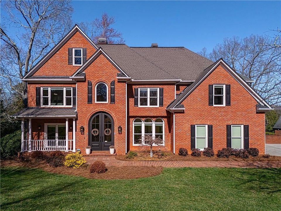 Prominently placed in prestigious Cherokee Forrest community, 4306 Tall Hickory Trail is a stunning 6-bedroom, 5-bathroom Traditional Georgian Revival that perfectly blends timeless elegance with modern luxury. Set on 1.72 acres, this four-sided brick Traditional Georgian Revival home spans 5,734 sq. ft., offering a grand yet inviting presence. From its striking 9' metal double front doors to its thoughtfully designed interior, this home is a true masterpiece of craftsmanship and style. Step inside to be greeted by a two-story foyer that leads into the heart of the home, where soaring 26-ft. ceilings and a dramatic stack-stone fireplace make the great room a showstopper. The recently renovated chef's kitchen boasts custom cabinetry, quartz countertops, a high-end gas range, stainless steel appliances, and a walk-in pantry, ensuring both beauty and functionality. A formal dining room, private study/library with custom built-ins, and spacious breakfast area create a seamless flow for entertaining and everyday living. The primary suite is a private retreat featuring a cozy sitting area with a fireplace, a spa-like ensuite bath with a freestanding soaking tub, glass-enclosed shower, and an expansive walk-in closet. The additional bedrooms are generously sized, with beautifully updated bathrooms and ample closet space. The fully finished terrace level offers versatility, complete with a secondary kitchen, bedroom, full bath, and a spacious recreation area-perfect for an in-law suite, home theater, or gym. Outdoor living is just as spectacular, with an expansive deck overlooking the fenced backyard, ideal for entertaining or enjoying peaceful evenings. The property extends to a gazebo and private wooded retreat, providing a tranquil escape. With professional landscaping and ample green space, this home offers a perfect balance of privacy and community living. Located in the highly sought-after North Hall school district, this home is just minutes from Lake Lanier and offers exclusive access to tennis courts, a pool, a playground, and scenic walking trails. With its prime location near Gainesville's shopping, dining, and outdoor recreation, 4306 Tall Hickory Trail is an exceptional opportunity to own a grand estate with modern updates in one of the area's most desirable neighborhoods. Schedule your private showing today!