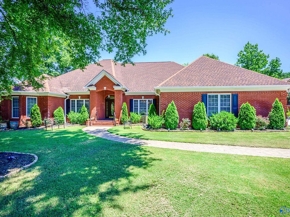 Lovely brick home on a cul-de-sac in established neighborhood. Conveniently located 30 minutes from Huntsville, 5 minutes to I-65 and a 5 minute golf cart ride to Burningtree Country Club. The home has been tastefully updated throughout and features 4 bedrooms on the main level with an isolated primary suite with new spa-like bathroom. There is a large bonus room upstairs that would make a perfect media/rec room, man-cave or art studio. The kitchen is open to breakfast and living rooms and is perfect for socializing with family and friends. The park-like backyard is a gardeners dream with plenty of room for veggie & flower gardens, impromptu games of tag and a covered patio for entertaining.