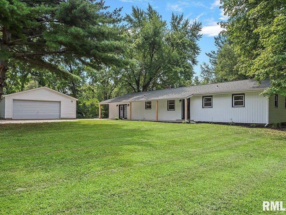 Tucked far back from the road on 4.52 wooded acres, this move-in ready gem offers the perfect rural retreat—just outside the hustle & bustle with all the peace of the country and none of the long commute. Located in Pleasant Plains School District with a Springfield address, the setting alone is a showstopper: thick timber, tons of private yard space, and a covered front patio plus rear patio for soaking in the serenity. Inside, enjoy all-new finishes top to bottom including sleek LVP flooring, neutral plush carpet in the bedrooms, fresh fixtures, hardware, and a bold floor-to-ceiling black accent fireplace in the bright living space. The open kitchen features white cabinetry, new stainless appliances, chic black hardware, and plenty of room to dine in. A massive bonus room addition offers built-in bar, drop zone, supplemental HVAC, and main floor laundry tucked neatly behind barn doors. Updates continue with a 2-car detached garage, French door patio access, tankless water heater, and 2021 furnace/AC. Septic repairs will be complete before closing, making this one a move-in ready modern farmhouse dream with rare land, location & lifestyle. Pond by house is NOT part of the property. Septic maintenance & repair work is currently underway and will be completed before closing. Please see inspection report for all other repairs noted & complete.