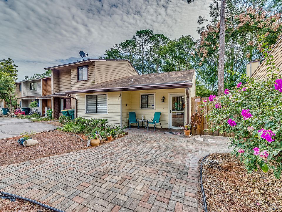 Wonderfully maintained 2BR, 2BA End Unit Townhome in the heart of Mandarin with NO STAIRS. Located in a culdesac so traffic is minimal. One level open floor plan unit with newer HVAC and updated wood flooring. Owner suite with attached bathroom and walk in shower. Spacious bedrooms and fenced in private backyard, with a covered patio, Extended patio as well!! Stone accented wall on wood burning fireplace. Close to shopping. This home will not last long!!!