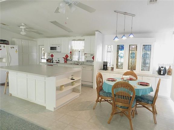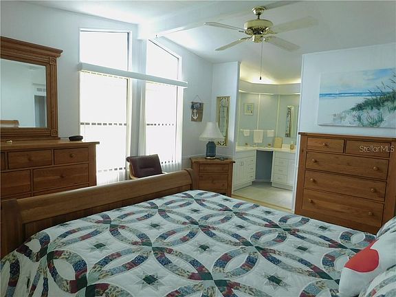 Welcome to Tidevue Estates a land owned 55+ community! If your looking for a property that requires no work or updating this is the home for you. This home comes turn-key furnished for your convenience. AC/Humidistat is only 1 year old. Open floor plan with vaulted ceilings. If you like to cook your going to love this kitchen. Large kitchen island with plenty of space to prepare your favorite dishes. Updated kitchen cabinets with pull out drawers. Floating vinyl flooring through out kitchen, dining room and bathrooms. Spacious master bedroom has vaulted ceilings, blond laminate flooring and two walk in closets. Duo sinks and walk in shower complete the master en suite. Ceiling fans through out home. This home has it all a Florida room, screened lanai with vinyl windows and open front porch. Laundry room off of lanai. A separate work shop with electric is also off of lanai and has a outside entrance. Low HOA of $456 annually. Pets are not permitted. Many activities are offered in this very active community. Meet and make new friends for a game of pickle ball, bocce ball or shuffleboard. Take a water aerobics class in the heated community pool. Fitness Room. Community library has WI-FI connection. Golf league. Dinners and Dances. Convenient location to I-75, Ellenton Premium Outlet mall, restaurants, medical facility's and beautiful Gulf Beaches. Come join the Tideve Life Style Today!