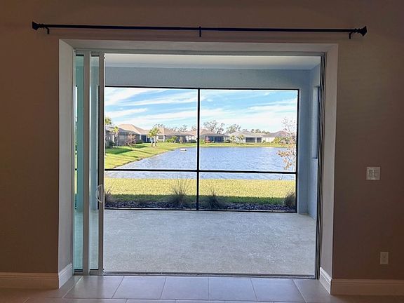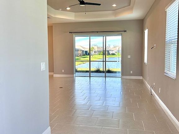 There are three bedrooms, 2 and 1/2 baths with a large den with doors. Owner has upscaled all the applicances, fans etc. The LARGE screened in porch is made for a nice sized seating area/dining table and it over looks a beautiful lake full of birds and wild life!