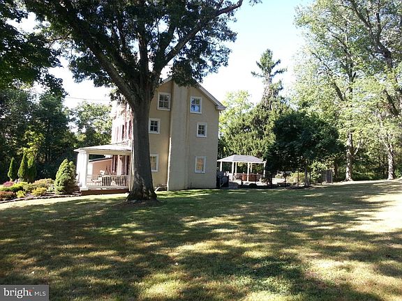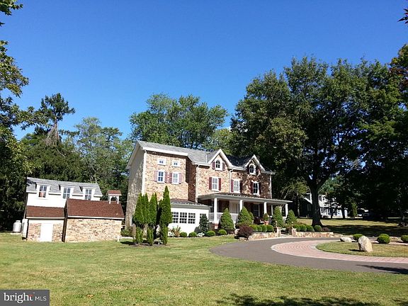 This classic 5 bedroom, 3 full bath Bucks County Stone Farmhouse with a magnificent circular driveway sits on a beautiful lot and features an incredibly inviting large front porch, beautiful hardwood floors throughout, new roof in 2018, and an in ground pool with waterfall feature, raised fire pit and outdoor entertaining cabana complete with granite, wet bar & gas grill. There is also a separate 2 story building currently used for an office - renovated would make a fabulous IN-LAW area or bath house - and a small spring house. Beautifully maintained and expertly updated when originally purchased in 1998, this classic farmhouse for which Bucks County is known for retains the charm of yesterday with today's amenities. The large solid wood front door leads you into a sun drenched family room with recessed lighting and views of the beautiful in ground pool/cabana and surrounding greenery. To your right is an antique wood paneled library with fireplace, built in book cases and closets for storage. To the left of the family room as you step down, you'll find the sunlit breakfast (or dining) room complete with wine/coffee wet bar and a wall of windows looking out onto the front of the property. The updated cozy kitchen with stainless steel appliances has radiant heated floors, deep set windows and lots of storage! A front and rear staircase takes you up to 5 large bedrooms, 3 full baths, walk in master closet and finished attic space. A large utility basement only 4 steps down from the kitchen with tiled floor and laundry are wonderful compliments to this home and feature an outside entry as well. The outdoor living space is fantastic! The in ground heated pool & spa are all set in natural travertine stone with fiber optic night lighting all around the perimeters, beautiful multi-colored tile fish accents on the bottom surface of the pool, an inviting natural rock waterfall feature and a cabana with stacked stone eat-at wet bar, gas grill, storage and granite counter. There is also a raised gas fire pit as well as the beautiful old fieldstone firepit in the back yard! This home presents an amazing value, all in Central Bucks with loads of options, flexibility and conveniently located 2 minutes from Doylestown.