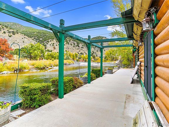 Waterfront property along the Arkansas River 5 minutes from downtown Salida! No covenants, Rural zoning in unincorporated Chaffee County... Perfect for those looking for their very own rafting take-out point, or space to park RVs or recreational vehicles. Property borders BLM land on the east and Four Seasons RV Park to the west. Easy access to miles of trails on Methodist Mountain, “S” Mountain and Rainbow Trail. Log cabin-style home built in 2003 by current owner has been meticulously cared for inside and out. Spacious kitchen with induction cooktop, pot filler faucet, stainless-steel appliances and a large kitchen island opening to great room with vaulted ceilings, beautiful wood beams, large windows and doors to the riverside patio. Newer furnace and water heater. Propane tank on property is owned by Seller and serviced monthly. Primary bedroom on main level includes access to riverside patio, spacious closets & private bathroom with double sinks & shower. A second bed and full bath are also on main level. A third bedroom and 3/4 bath are on the upper level, plus access to attic storage space. A 616 sf detached 2-car garage plus 2 small sheds/workshops have electricity and provide ample storage. Retractable outdoor shades over patio provide shade in warm summer months. Enjoy the peaceful sound of the Arkansas River from the outdoor patio that is just steps from the river! Furniture is negotiable. STRs allowed - check County for process & regulations. Four Seasons RV Park leases the portion of the property the RV Park occupies via a long-term lease. Property has a well and septic system that are separate from RV Park.