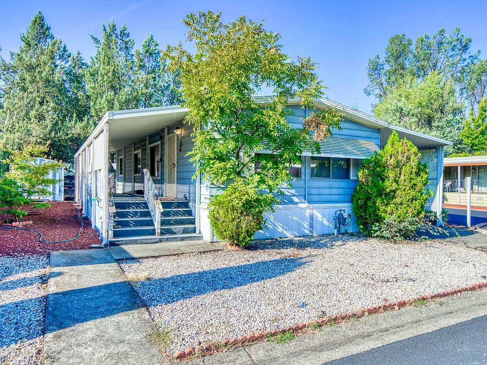 Affordable 2 bed, 2 bath home on a corner lot backing up to a creek in an ALL AGES park! With some updating, this home has great potential. Central A/C, Two seperate carports, and a couple storage sheds are just some of the features this great little home has to offer!