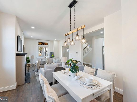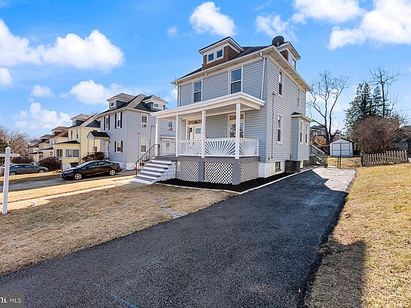 Stunning 5BR/2.5BA Farmhome located on quiet dead-end street with a large fenced lot in a desirable neighborhood of Belmar. Parking is ample in the newly paved driveway as you make your way to the covered front porch of your new home. Step into a home filled with tons of original character featuring refinished hardwood floors, plenty of natural light, original stained glass accent windows, a large entry foyer, and an open floor plan. The main floor consists of a large living room with decorative fireplace, a spacious dining room with a custom lighting fixture, a brand new kitchen, a half bath, and a main floor laundry room. The kitchen features plenty of cabinets, open shelving, stainless steel appliances, quartz countertops with a beautifully tiled backsplash, and a deep stainless sink under a window. Take the wood staircase to the second floor to find two sizable secondary bedrooms, a large primary bedroom, and a full bath. The newly carpeted bonus space on the third floor is ideal as a grand primary bedroom, office or playroom with tons of hidden storage. The lower level is finished, newly carpeted, featuring the fifth bedroom, a full bath with walk-in shower, a large family room, storage, and a walk-out to the fenced yard. From the main floor mudroom, step outside to an oversized covered deck that overlooks the tons of green space in this spacious fenced yard. This home is move-in ready with so much to offer new homeowners and is located in close proximity to shopping, restaurants, and commuter routes in Baltimore County!