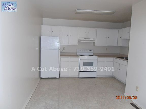 Ranch style 2 bedroom, 1 bath with refridgerator, stove, dishwasher and full size washer and dryer for $650.00 plus utilities and $500.00 deposit. Cats welcome with additional $250.00 deposit. 1 year lease. This is a no smoking / no medical or recreational marijuana property. Call today for a showing at 719-359-9491.