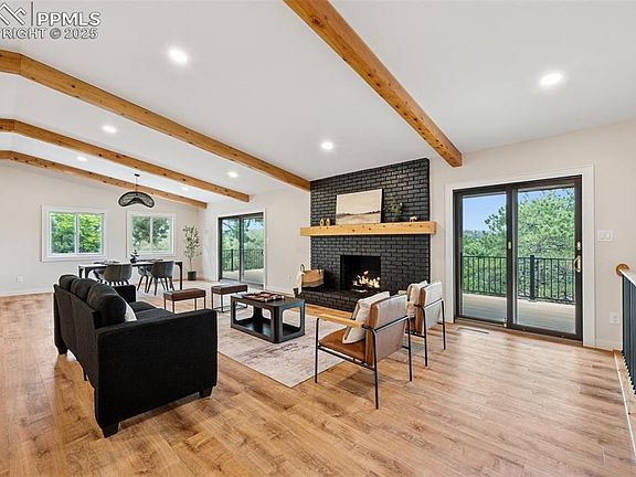 This stunning home has been fully reimagined with designer finishes, high-end upgrades, and thoughtful craftsmanship throughout. Located on a quiet cul-de-sac in an established neighborhood just steps from parks, schools, and hiking trails, it offers the perfect blend of luxury and livability. Step inside to a gorgeous open-concept layout with vaulted ceilings and abundant natural light—ideal for both daily living and entertaining. The fully remodeled kitchen features artisan walnut-finish cabinetry with soft-close drawers, quartz countertops, and a dramatic full-height tile backsplash. An oversized island offers generous seating, while the gas range with stainless steel hood is perfect for serious cooking. Every detail is cohesive, right down to the matching quartz windowsill and premium cabinet hardware. All three bathrooms have been beautifully renovated with designer tilework and custom cabinetry. The primary bath boasts floor-to-ceiling tile, dual Delta shower heads, and a spa-like ambiance. Thoughtful touches include cherry shelving, hand-crafted alder wood stair railings, and Western Red Cedar ceiling beams that match the fireplace mantle—complete with a built-in outlet for seamless TV mounting. Enjoy brand-new luxury vinyl plank flooring, plush carpet, dimmable LED recessed lighting, stylish fixtures, and all new doors, trim, and hardware. A modern, arc-fault protected electrical panel enhances safety, and a dedicated laundry room includes hookups for a utility sink. Efficiency meets comfort with a brand-new high-efficiency furnace, A/C, full HVAC system, and high-performance windows throughout.