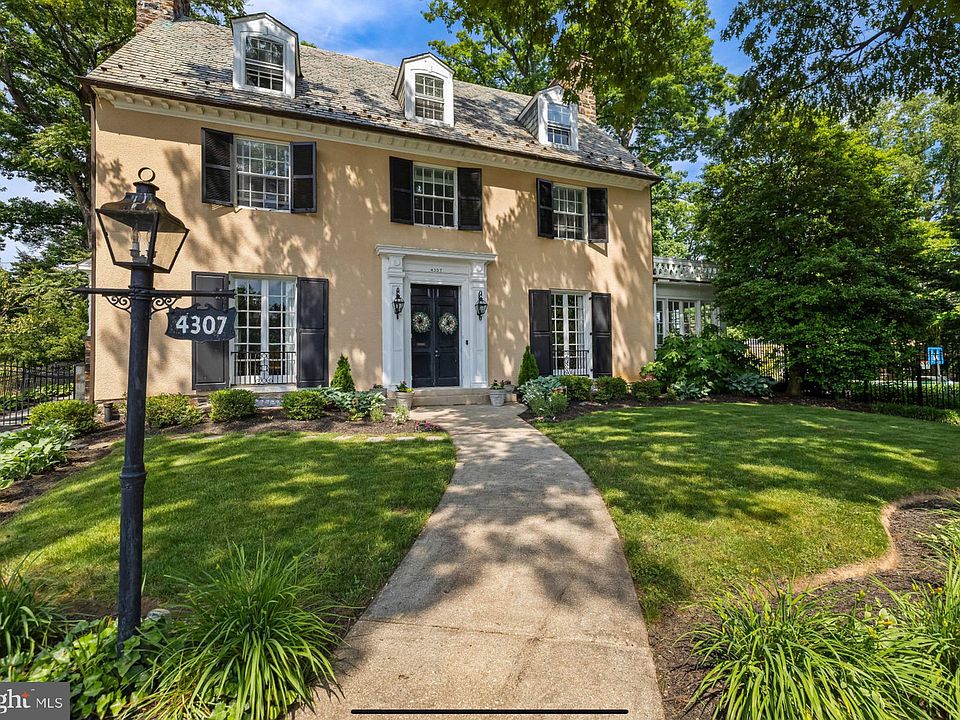 Built in 1922 in the prestigious Guilford neighborhood, 4307 N Charles Street boasts an exquisite Georgian-style residence designed by the renowned Edward L. Palmer. This incredible home offers over 5,000 square feet of luxurious living space with six bedrooms and five and a half baths, seamlessly combining classic elegance with modern updates. Upon entering through paneled double doors, guests are welcomed into a grand vestibule which leads into a large foyer boasting hardwood floors, a striking oak staircase with painted spindles, and built-up crown molding. The foyer flows effortlessly into the main living areas. The spacious living room, adorned with a gas fireplace, offers two sets of French doors that open to a sun-drenched sunroom with three walls of windows and French doors leading to the pool area, making it an ideal spot for summer parties and relaxation by the stone chimney wall's woodburning fireplace. The formal dining room, with its paneled alcove and classic pilasters, is perfect for hosting elegant dinners and adjoins to the beautifully appointed kitchen featuring hardwood flooring, a coffered ceiling, custom cabinetry, and professional grade appliances. The kitchen's wide cased portal opens to the family room where hardwood floors, built-in bookcases, and expansive windows with plantation blinds provide a warm and welcoming ambiance. The family room provides convenient access to a walk-in pantry and a powder room. The second level includes a thoughtfully designed office with heated marble flooring and a step-up flow through classic columns. The sumptuous primary bedroom suite is a sanctuary of comfort, featuring hardwood floors, custom built-in cabinetry, and French doors that open to a private rooftop area. The luxurious primary bath boasts a heated chevron pattern marble floor, a double vanity, a footed soaking tub, and a shower stall with subway tile walls and a marble bench. Two additional en-suite bedrooms and a study complete this level. The third level offers even more living space with three additional bedrooms, 2 with en-suite baths. Bedroom 4 has access to a rooftop area, providing a serene retreat with scenic views. The property sits on a professionally landscaped .86-acre lot with sprawling lawns and magnificent trees. An expansive bluestone patio, accessible from the kitchen, leads to a fenced pool sanctuary perfect for relaxing. This city oasis is great for entertaining and outdoor activities, while the electronically gated driveway ensures privacy and security. A detached two-car garage with a slate roof complements the home's exterior design. This remarkable Guilford property at 4307 N Charles Street offers the perfect blend of historic charm and modern luxury.