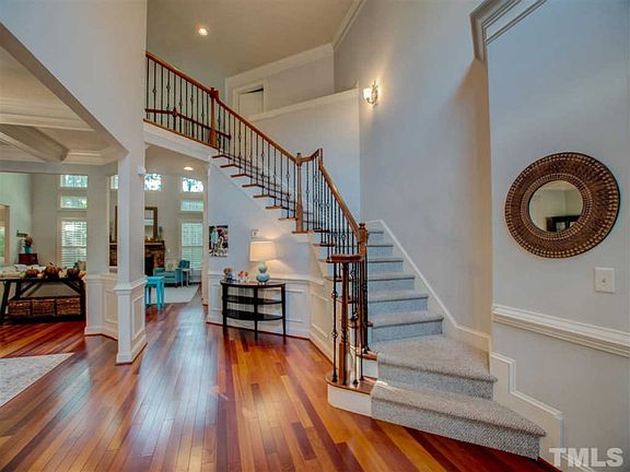Welcome home to this 4BR/3.5BA culdesac home walking distance to Leesville schools, library, Lake Lynn & greenway. Natural light floods the 2 story foyer & fam rooms! Custom built ins in Fam Rm w/ ample storage. Kitchen w/ granite, tile backspl, 5 burner gas cooktop, SS appli, pantry and breakfast nook. Comfy outdoor living w/ newer screened porch, outdoor FP and deck w/ gas line for grill. Downstairs mstr ste, jetted garden tub and w/i closet! 3BR upstairs + bonus & flex rm. Close to 540, 440 & more!