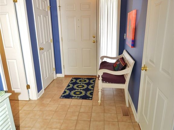 ONE STORY Condo in Jefferson Place across from Eagle Marsh. Hard to find end unit RANCH with large patio,3 sides of windows and open concept floor plan. Delightful interior with many upgrades since 2011. Ceramic tile in the foyer, 1/2 bath, Kitchen and breakfast room. Great room has 10 ft ceilings, elegant gas fireplace, office/desk alcove, and opens to the dining room. There are beautiful Brazilian cherry wood floors in the great room and dining room. Interior has been completely painted and is fresh and inviting. Painted custom crown molding and trim, 6 panel doors, and Transom windows. Lovely u shaped kitchen with pass thru to view the great room. Dining room offers slider to the large private patio. Master bedroom has high ceilings, large walk-in closet with entrance to full bath. Bed room #2 is good size which would be a good guest room or den/office. Pool, tennis courts, walking paths, lawn maintenance, mulching and snow removal included in monthly association fee. Exclude shower curtain and rod, Dining room light fixture, washer and dryer, and Dining room/patio curtains. Update since 2011....New bathtub & surround. New marble counter tops in both bathrooms plus new faucets towel bars etc. New lighting in 1/2 bath. Condo completely painted...walls and trim. Reverse osmosis water system(new tank in 2016). New lighting in kitchen, hallway and 2nd bedroom. 1/2 circle window in living room replaced 2011. Furnace and A/C serviced by Chestnut Services. Come take a look this unit is in Great condition!!