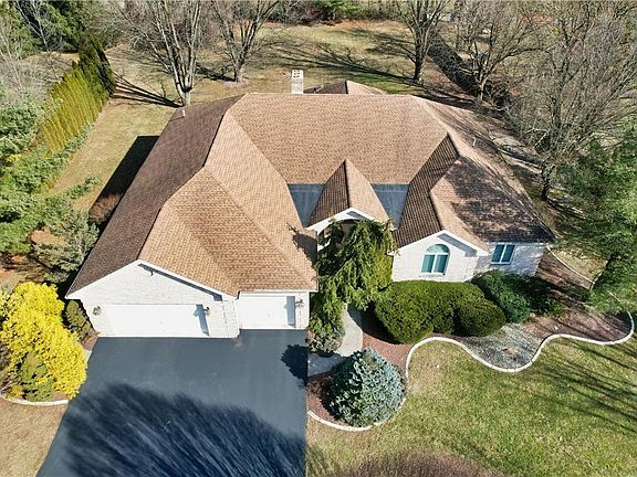 Welcome to this custom-built brick ranch, combining privacy w/ a convenient location. Featuring over 6,000+ square feet of living space, a large basement that makes for a perfect in-law suite, and an over 1-acre lot, this home is truly one of a kind. Upon entering, you will notice the vaulted ceilings in the foyer & gleaming hardwood floors throughout, leading you into the open great room with large windows that is the center point of the home. The oversized eat-in kitchen is the perfect place for gathering w/ family, featuring a breakfast bar, Corian countertops, & windows letting natural light into the space. The private master BR suite offers 13-foot tray ceilings, expansive walk-in closet, & a master bathroom that is nothing short of a spa retreat w/ a soaking tub & 2-person glass-wall shower. On the opposite side of the home, a guest wing features 2 additional BRs with a full bath providing privacy & comfort for all. The basement of this home is spectacular featuring an in-law suite w/ its own kitchen, full bathroom w/ a built-in sauna, living rm w/ fireplace, & ample space to add a BR. With a private entrance from the 3-car garage, this area could serve as a separate apartment, ideal for extended family or guests seeking their own retreat. The covered brick patio is perfect for enjoying the weather, overlooking the large flat backyard. Easy access to all major routes (22,33,78), shopping, dining, & healthcare. Schedule a private showing today!