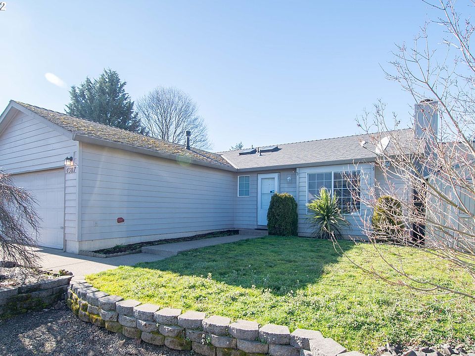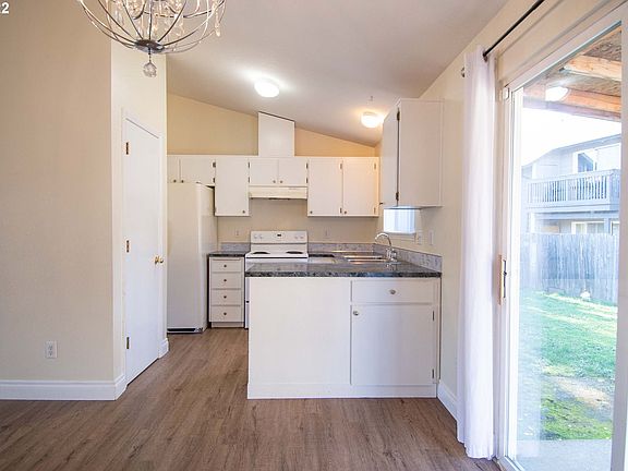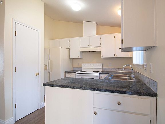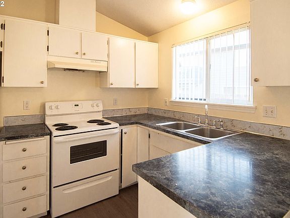 Super cute one level with open floor that is privately tucked back on a cul-de-sac!Laminated floors in livingspace,Bedrms w/wall to wall carpet.Light and Bright!Living room w/vaulted ceiling has fireplace w/title & opens to dining/kitchen area with slider to covered patio & fenced backyard.Kit has pantry & all appliances. Nice size bedrooms. Primary bedroom w/bath & 2 closets. Apprx 10-minute walk to Powell Butte,restaurants & conveniences! Backyard has room for garden and play area!