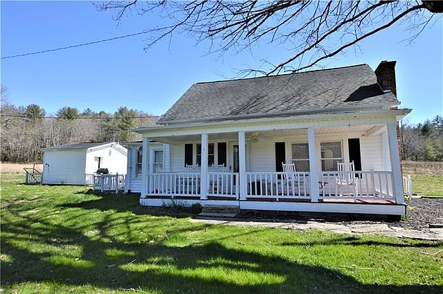 This quaint farmhouse is located in the beautiful Happy Valley community. The home has a large front yard and mountain views. The seller is in the process of surveying the home out of a larger tract of land. It will be offered with 3 acres more or less. The home has a covered front porch, living room, eat-in kitchen, large laundry room, master bedroom and a 2nd bedroom on the main floor. 2 additional rooms upstairs are heated solely with portable heaters and have ceilings under 7ft, therefore they are not counted in the number of rooms/bedrooms or in the heated square footage. There is a storage building for lawn equipment, tools, etc. Enjoy quiet country living with no city taxes! Approximately 25 minutes from Blowing Rock. This home will not qualify for FHA, USDA, or VA financing.