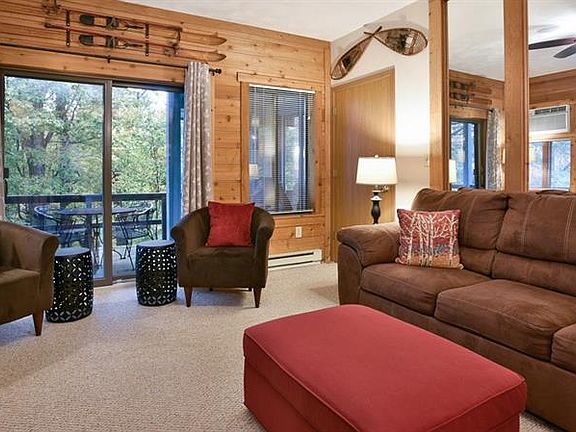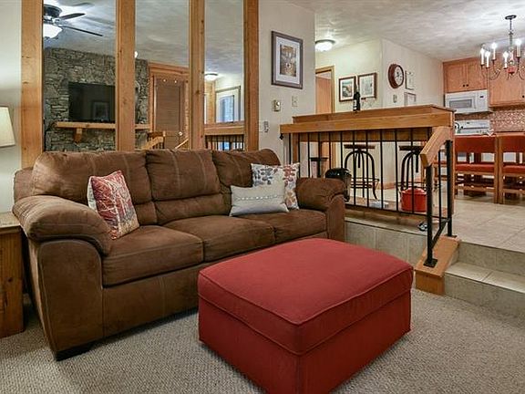 Rare Schreckhorn floor plan with finished second bedroom, perfect for anyone wanting a small condo with 913 sq ft. Nicely appointed with a large deck. Wooded views in summer and views of the resort in winter. Convenient to the community pool, tennis courts & picnic area. Shuttle service provided by HOA as well as firewood for your wood burning fireplace. There is an outside closet at the entry for ski or general storage.