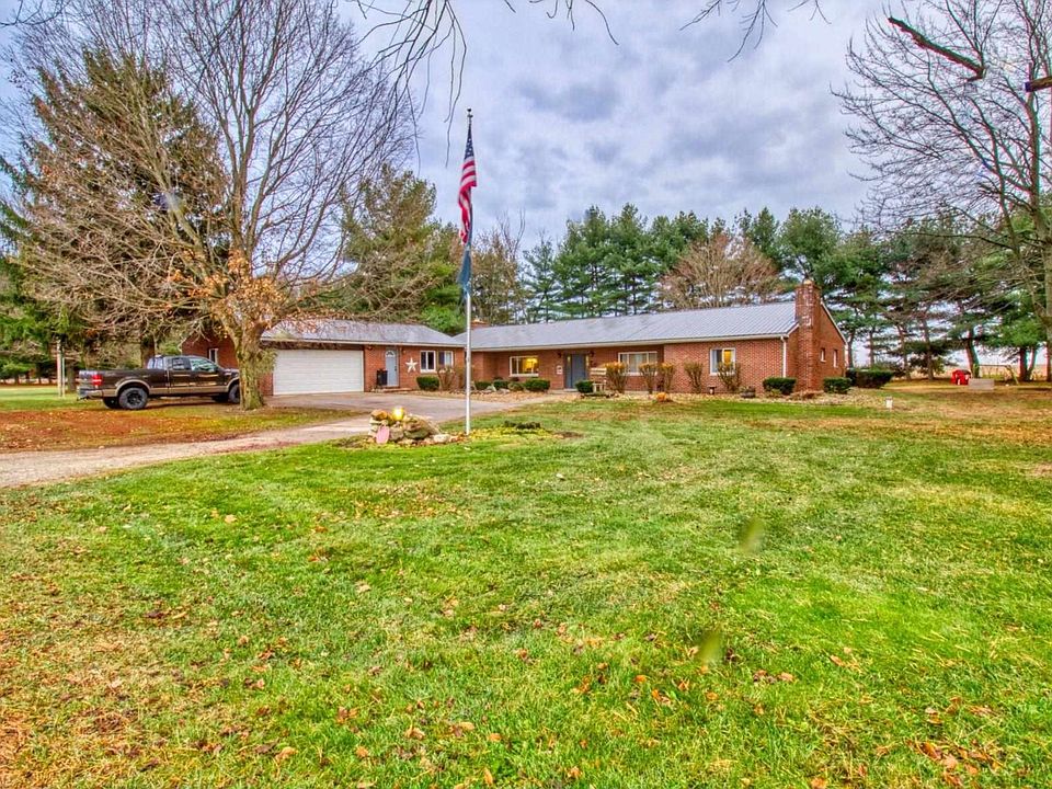 With a little vision, this property could be your dream country home. Over 3,000 SF. Needs flooring but the possibilities here are awesome. An open kitchen, dining, and living area, four bedrooms, and three baths just waiting for you to add your personal touch. 3 acres, a pole barn with a stall for horses, and a fenced pasture. Sprawling brick ranch home.