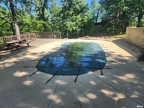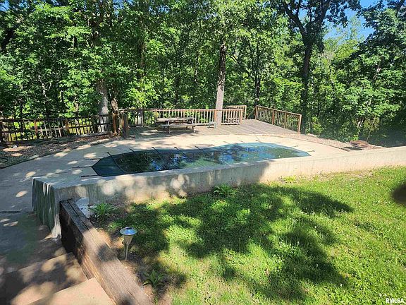 Rare find - 1.5 story home with exceptional view of Pinckneyville City Lake - This home features privacy surrounded by woods - recent updates include in ground pool large deck and beautiful landscaping - wood ceiling in oversized entry room with perfect water view - open kitchen and LR divided by snack counter - large utility or possible 3rd bedroom - detached garage - storage shed - perfect location for those who enjoy the outdoors