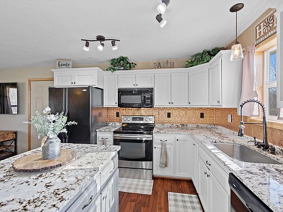 Come and see this cozy one-story house nestled in a serene and secluded environment within the Cambridge-Isanti School District. This home has been renovated and features a spacious main floor master bedroom suite with an updated bathroom. The floors are adorned with laminate and slate tiles, while new carpets were installed in the basement in 2022. In the same year, an additional cement slab was added to expand the outdoor patio, and a brand new sump pump and fully heated garage were also installed. The kitchen and bathrooms have granite countertops, and the interior is freshly painted with neutral décor. The house has four bedrooms, three bathrooms, and a den that can be used for various purposes. A unique feature is the wet bar space with laundry facilities. You can enjoy your private retreat with a front porch, a walk-out lower level leading to a back patio, and a back deck off the dining room. There is also a bonfire pit where you can relax and enjoy the peaceful country life.