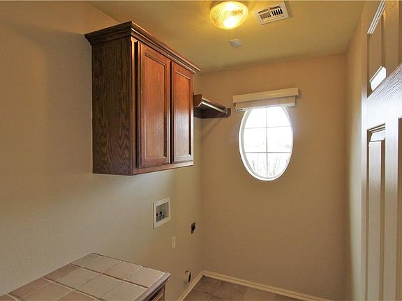 Immaculate home built in 2005 with 1381 square feet, new paint, located in newer part of SW Moore, mother-in-law floor plan, large living room with high ceilings, laminate wood-look floors, gas log fire place, large breakfast bar, smooth-top stove, microwave, pantry, ceramic tile in all wet areas & entry hall, cultured marble vanities, close to community playground and water park, close to Moore Riverwalk shopping. Located in the Broadmoore Elementary, Highland East Junior High and Moore High School systems. Security deposit is the same as one month's rent.